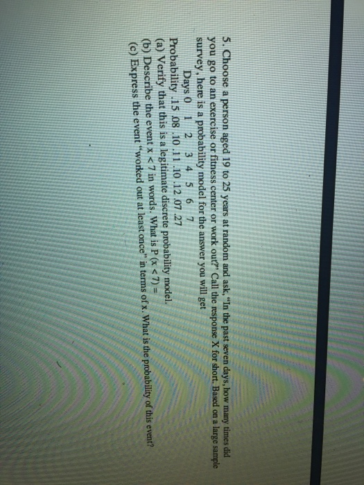 Solved New Year New Life A Statistician Asked 10 000 Adults Between 19 To 25 Years At Random And Asked In The Past Seven Days How Many Times Did You Go To An